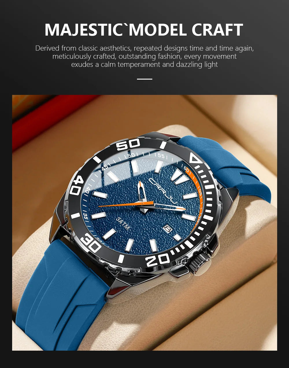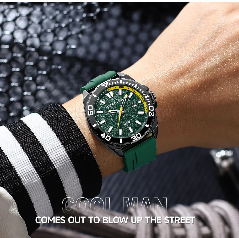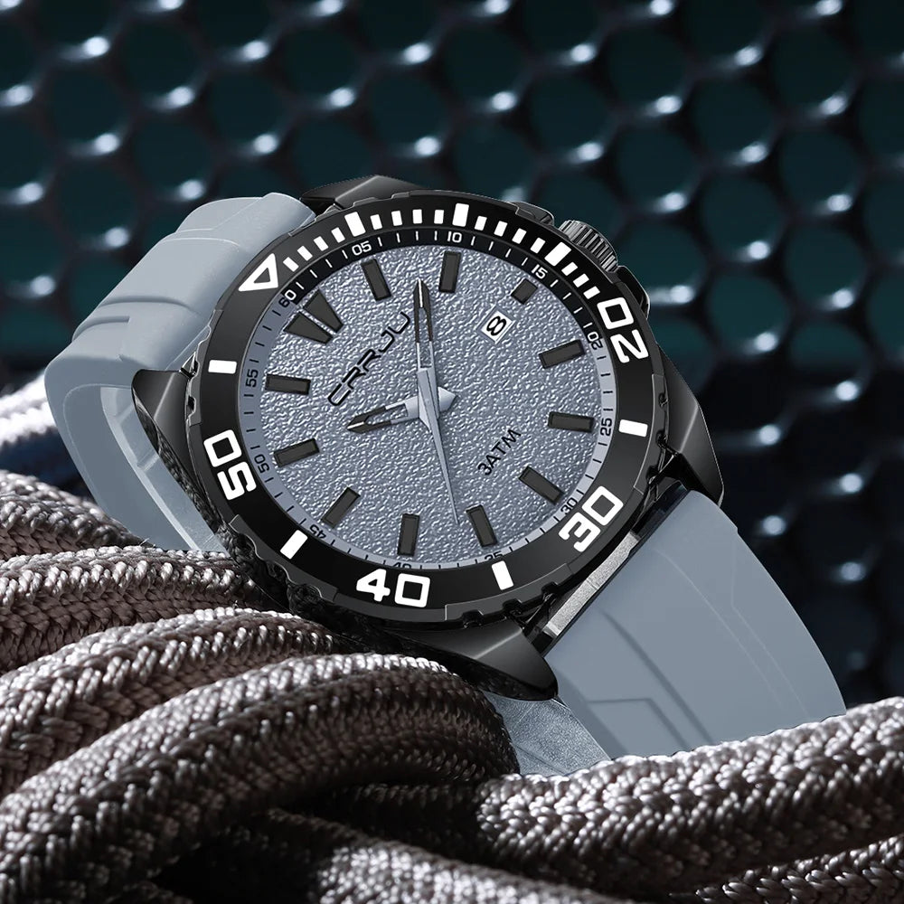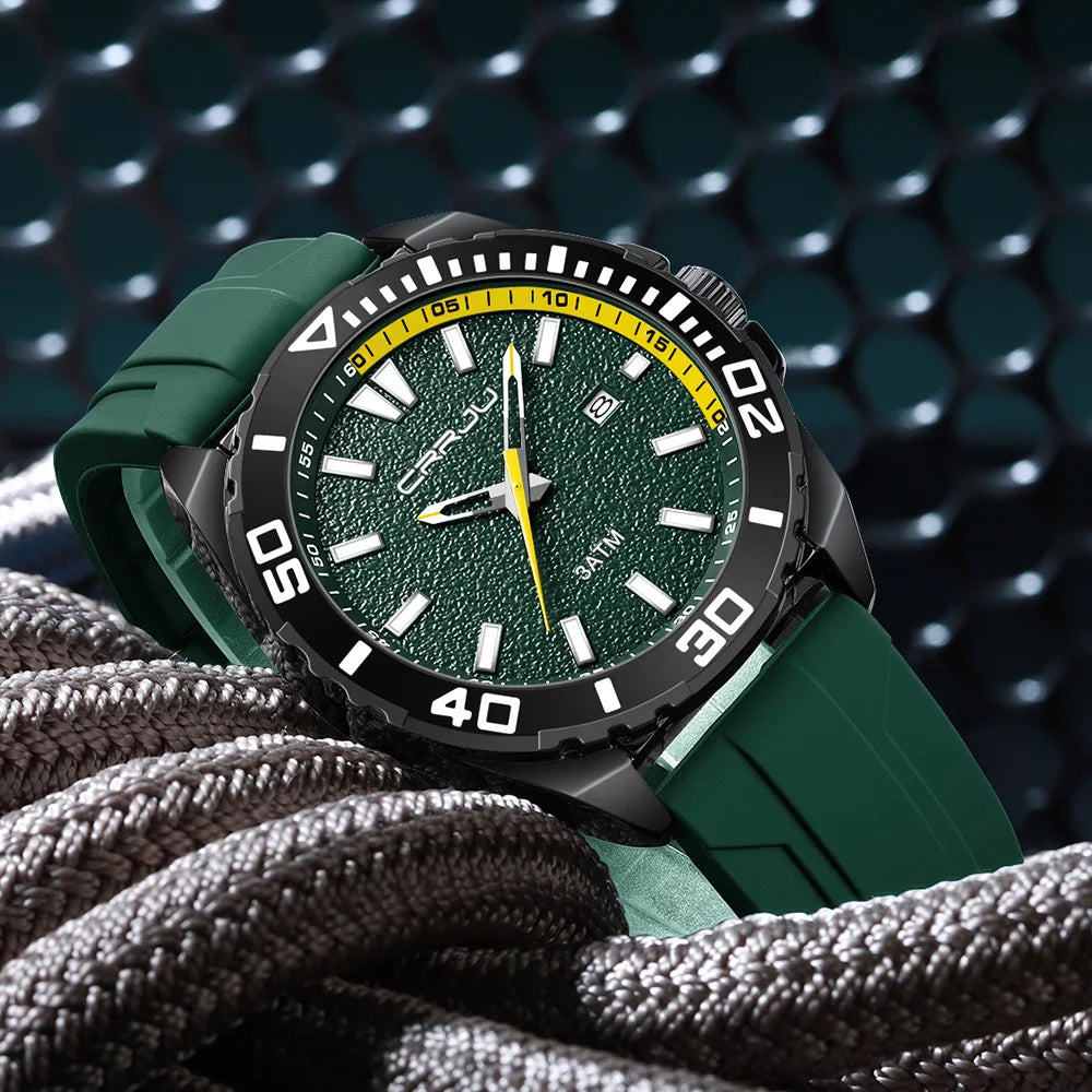 CRRJU Jam Tangan Lelaki Luminous Waterproof Watch Original Men Sports Watches Silicone Calendar Quartz Wristwatch